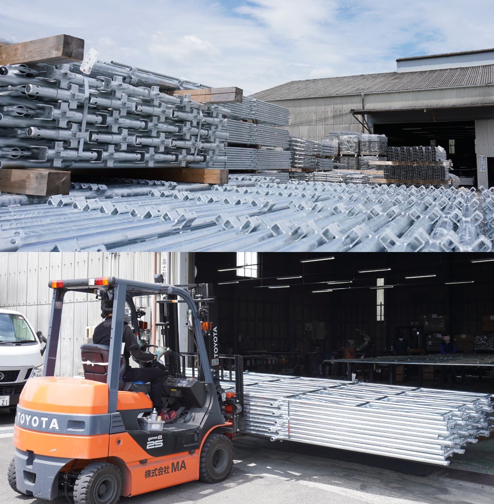 株式会社MA(エムエー)は、建築用足場資材などの金属製品の組み立て加工を行っている会社です。 Mは「Material/資材、Metal/金属、Make/創る」を表し、Aには「Assembly/組立、All/すべて」の意味を込めて、 資材の組立にトータルで対応できる会社を目指しています。